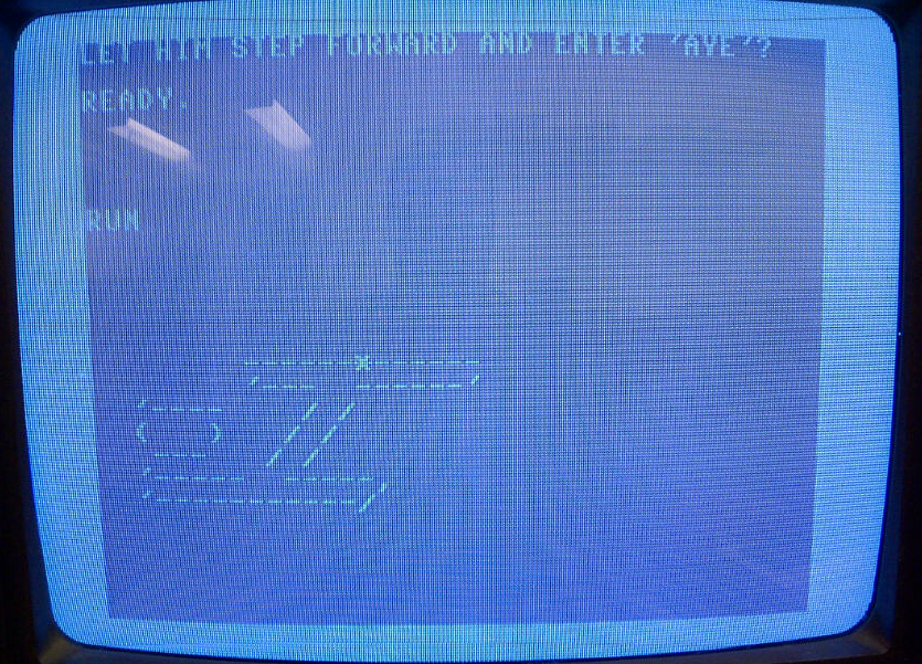 Yesterday I finally finished typing in everything (yes, you read it right!), and took me couple hours to go through the several game paths, and fix my mistakes like syntax errors. The game running as is, has serious problems to fit the C64 screen, as you can see on the photos below.