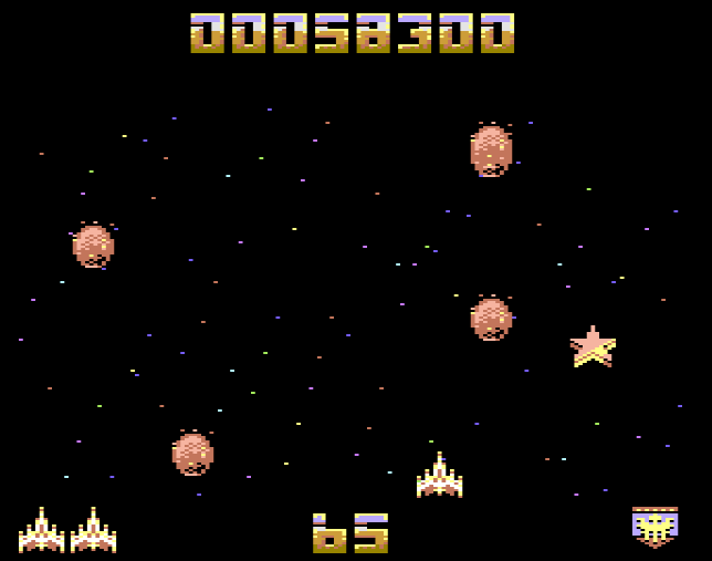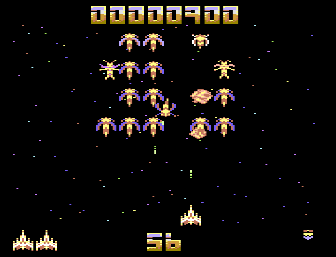 In my quick research, I couldn’t find why the game was like that since the Commodore 64 has excellent graphics and sound capabilities, and even its predecessor, the VIC-20 is better than what Galaga was presenting. Since the Atari 8-bit version is pretty much the same, my wild guess is that the publisher decided to develop for both machines using the same code base, including the (lack of) graphics. Maybe there was a PET version in development at the time, and that was the base for the other two ports. If you are curious, there is an excellent video on YouTube showing all the versions of Galaga on many different platforms.